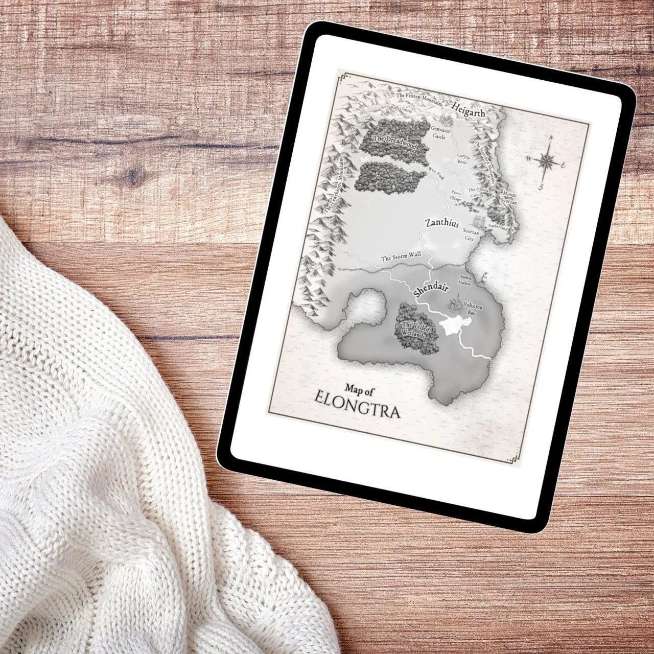 Stormsight ebook opened to the map of Elongtra